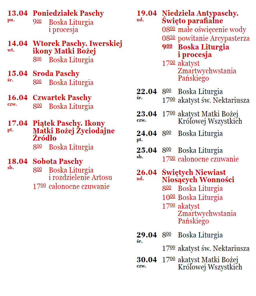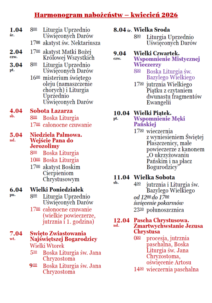 Harmonogramy nabożeństw